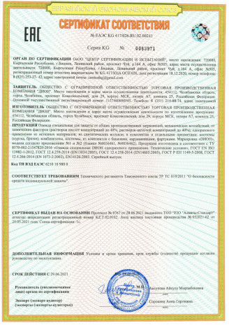 Наша продукция имеет сертификат соответствия и акт экспертизы Минпромторг России, подтверждающие ее качество и безопасность.